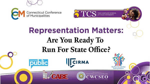 Connecticut Conference of Municipalities, proudly announces its FOURTH annual Representation Matters Two-Day Training in partnership with The Campaign School at Yale University, taking place virtually on February 24 and March 2, 2024, free of charge. Speakers will teach the ins and outs of getting elected or joining a board/commission and tell their stories from experience.