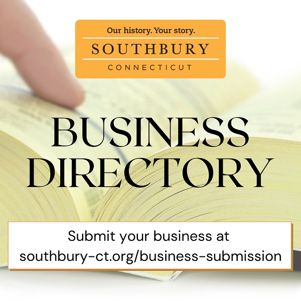 The Town of Southbury is publishing a Business Directory online. If your business is located in Southbury and you would like to be included, submit it for approval here: www.southbury-ct.org/business-submission.