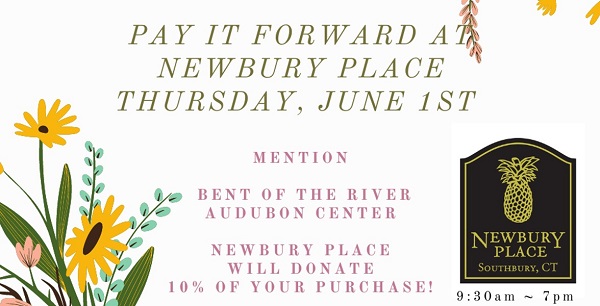 Newbury Place will donate 10% of their day's proceeds on Thursday, June 1, 2023, to Bent of the River Audubon Center. Please mention us!